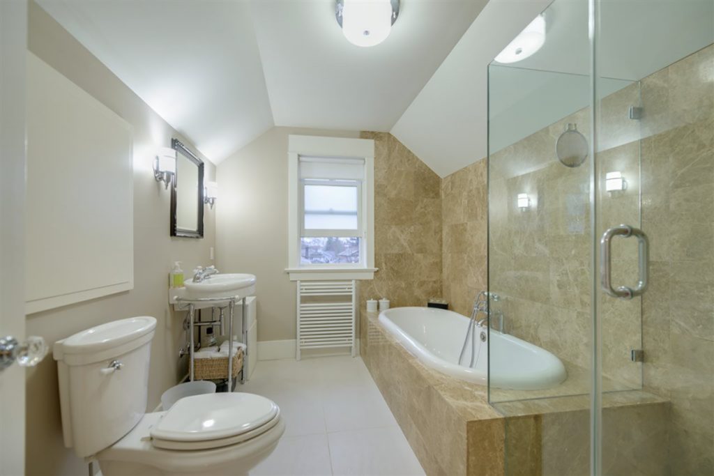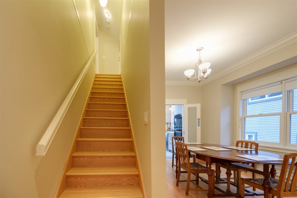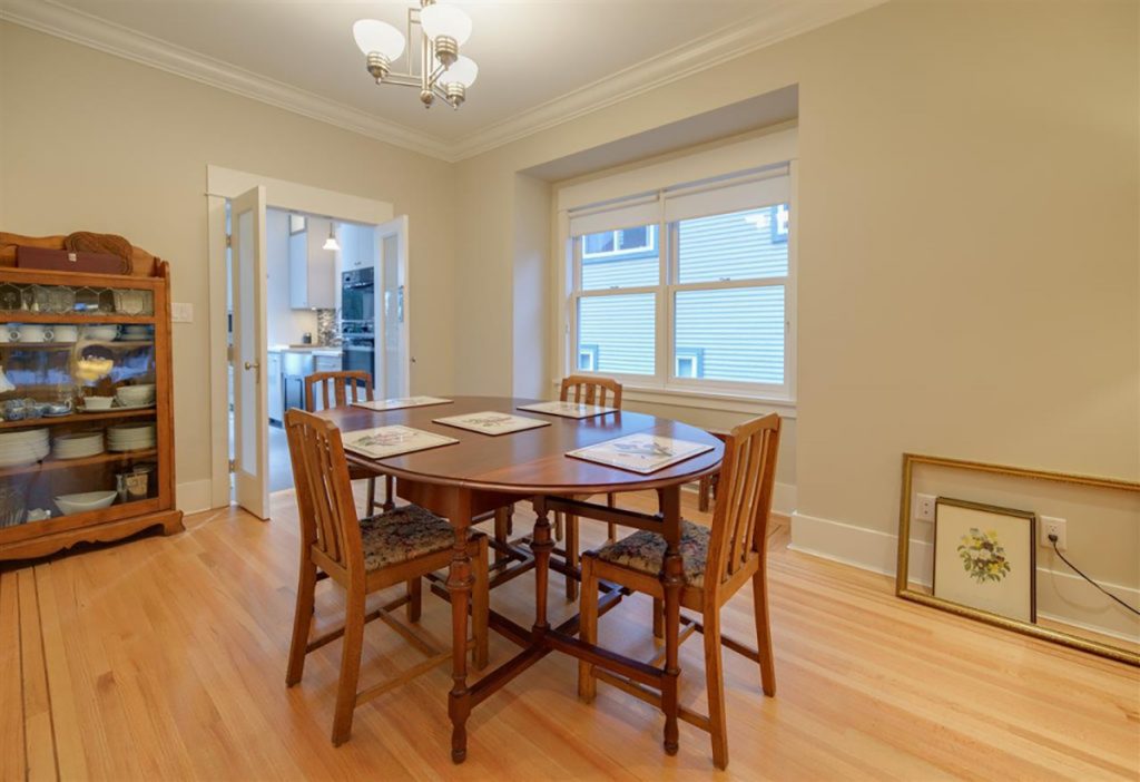 5 bedroom, 3 bath, "B" Listed Heritage Home. 4 beds, 2 baths upstairs, 1 bed, 1 bath legal one bedroom suite, currently not rented. 9 foot ceilings on main floor. Top floors gutted to the studs and fully renovated in 2009. Kitchen boasts, Meile appliances, including: steam oven, gas cooker, convection oven, built-in coffee maker, warming drawer, dishwasher, wine fridge and washer and dryer. Main floor has oak in-lay hardwood floors, gas fireplace with mosaic tile surround, crown mouldings. Hotwater heat throughout. Infloor heating in kitchen and tiled entry. Beautiful!