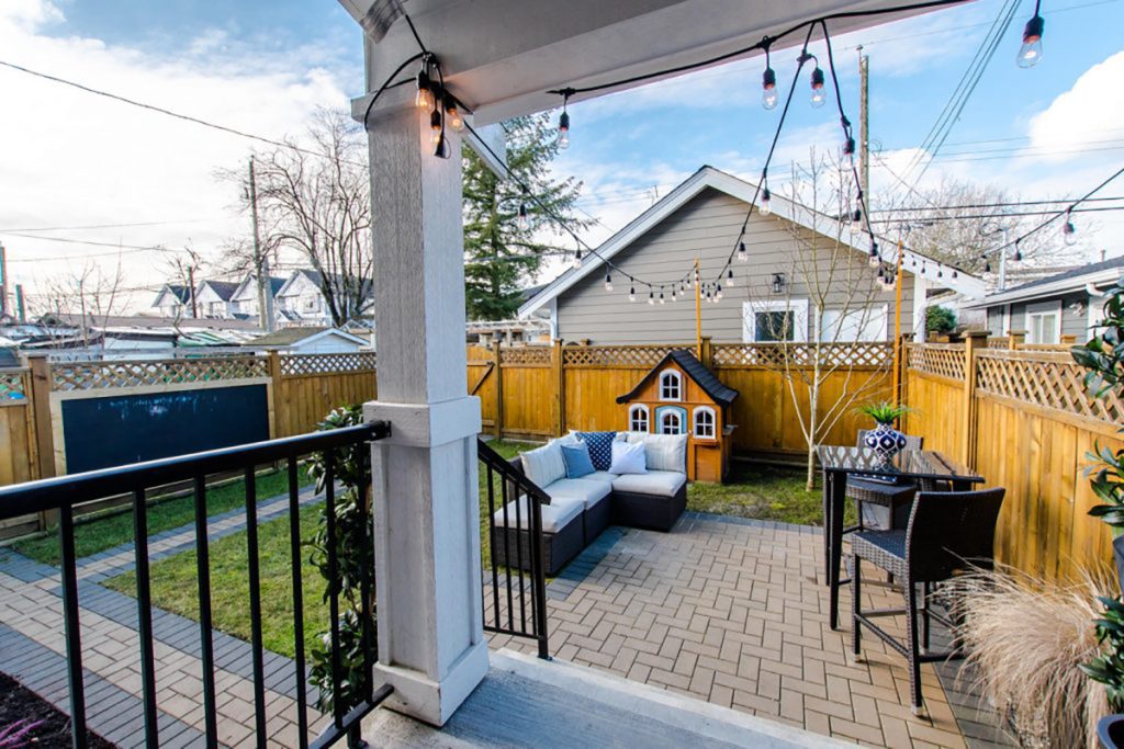 Own your little piece of heaven in the heart of East Vancouver. This half-duplex offers the sunny side of the property, the entire west-facing grass backyard which provides privacy, sunshine & access to the garage. Modern-heritage in feel, enjoy the light & airiness of the luxurious 9.5 foot ceilings, radiant in-floor heat & a cozy gas fireplace. A fantastic floorplan that feels larger than 1100 sqft, the main floor has an open plan which is perfect for get-togethers or just lounging. 3 bedrooms up, with vaulted ceilings & skylights in the hall & bathrooms. Prepare to fall in love as you imagine your new life here. Surrounded by great neighbours-professional couples/young families. Walk to cafes, restaurants, parks, schools, shops. Skip the condo & get yourself this home with the dreamy backyard.