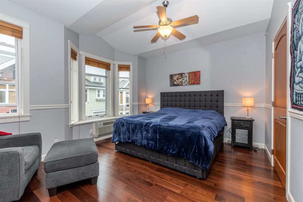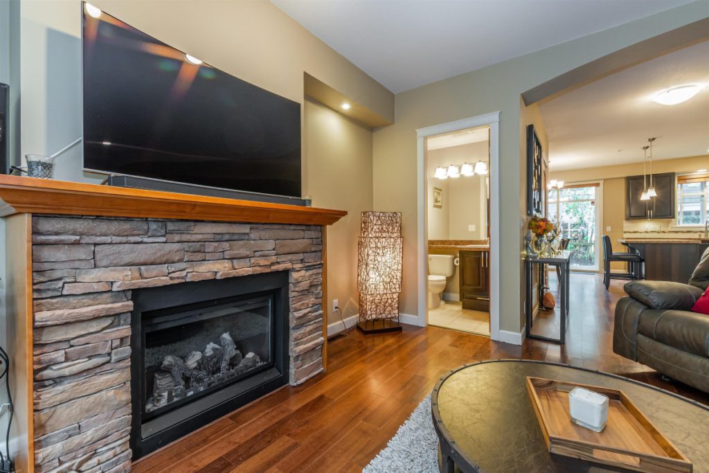 Welcome to Yorkson Creek! A family friendly, highly sought after complex, this unit has been custom designed and is waiting for you! Main floor, the kitchen has been upgraded with high-end appliances that enhance the granite counters and island entertaining space, and leads into the family area. The family space is great for movies, and is complete with a 2 pc bth and an cozy gas fireplace. Upstairs is the master bdrm, with a spacious walk-in closet, and a 5 pc ensuite that offers both a soaker tub and glass shower. Down the hallway, another full bathroom and walk in laundry room, before entering the 2nd bedroom that has the feels of a second master suite! Off the garage is a bdrm/flex room, complete with a full bath and storage room. Professionally installed A/C and HW on demand.