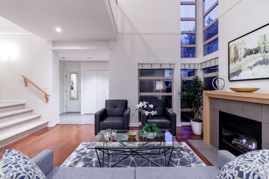 This luxurious townhouse provides the spaciousness & privacy of a house without the maintenance. 3200 spectacular sqft, 3 bedrooms up, featuring an incredible master suite with luxurious spa-like ensuite, 3.5 baths, full laundry room up, and a Rec room down. You are welcomed by the dramatic double-height living room, bank of windows and gleaming hardwood floors. You will enjoy true open concept living and a welcoming kitchen which is open to the bright family room. Double french doors allow you to walk out to your own private, west-facing, sunny patio. To complete this perfect package is the attached double garage and ample storage. The private, yet central location is unbeatable. Minutes from downtown, the best walking/hiking trails. Walk to Edgemont Village for your morning coffee.