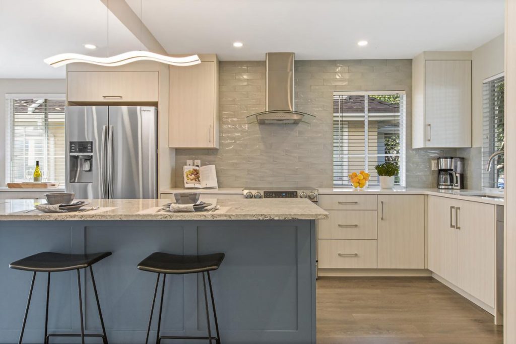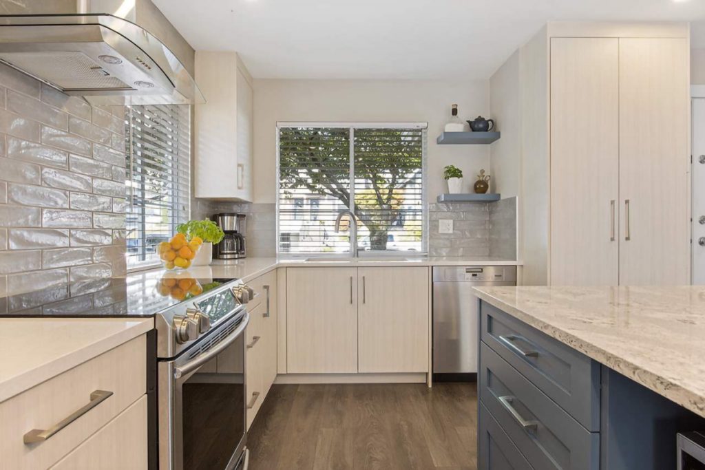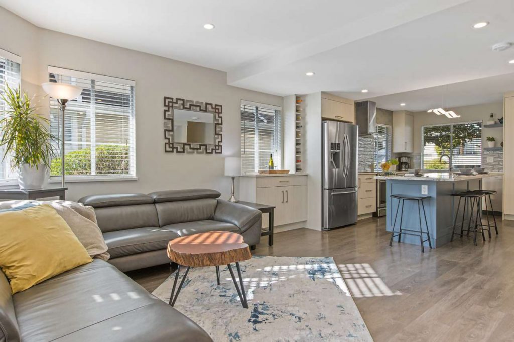 Calling all families! This beautifully RENOVATED end unit 3 level townhouse is located on a quiet tree-lined street just steps from all that Lower Lonsdale has to offer! $150,000 in recent renovations! You’ll love the gorgeous renovated main floor including a kitchen with a large island, family room flooring with in-floor heating, bathroom, and fireplace surround. Open concept living with access to a large sun-filled deck. Upstairs are 3 bedrooms & 2 newly renovated bathrooms. The lower floor provides a great recreation room & full bathroom, but can easily be a bedroom with ensuite. Large laundry/mudroom off of the garage with easy access to 2 parking stalls and storage locker plus large crawl/storage space. 1 dog or cat & no rentals in this small (12 unit) complex. Welcome, Home.