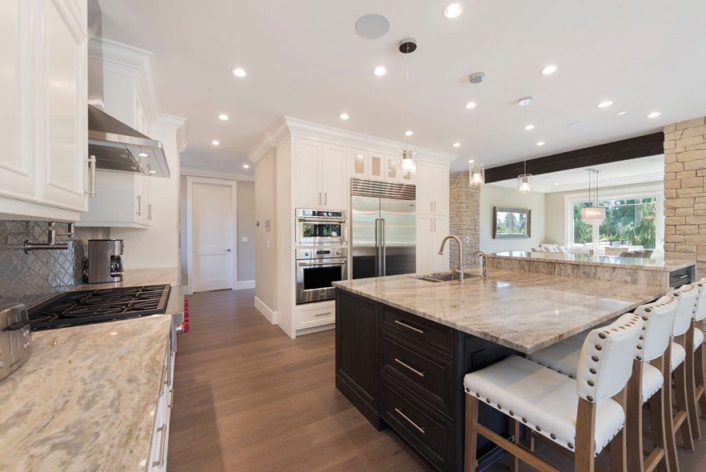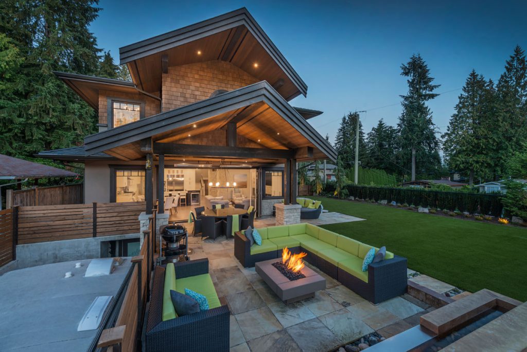 This stunning West Coast classic-contemporary chateau is like no other home on the market and features a dramatic and striking exterior with majestic envelope roofs, warm wood siding & shingles, anchored by cool natural stone. This elegant dream home artfully blends natural materials with contemporary finishes to create a perfect balance of luxury, sophistication, warmth and comfort. Elevated on a sunny southwest corner in family-friendly Canyon Heights, this home enjoys all day sun, as well as complete privacy and effortlessly integrates the indoor to outdoor living. There is a generous-sized covered outdoor area, overlooking the water feature and yard and is spectacular for entertaining or relaxing all year long. Enjoy the lush, yet low-maintenance yard and impressive curb appeal.